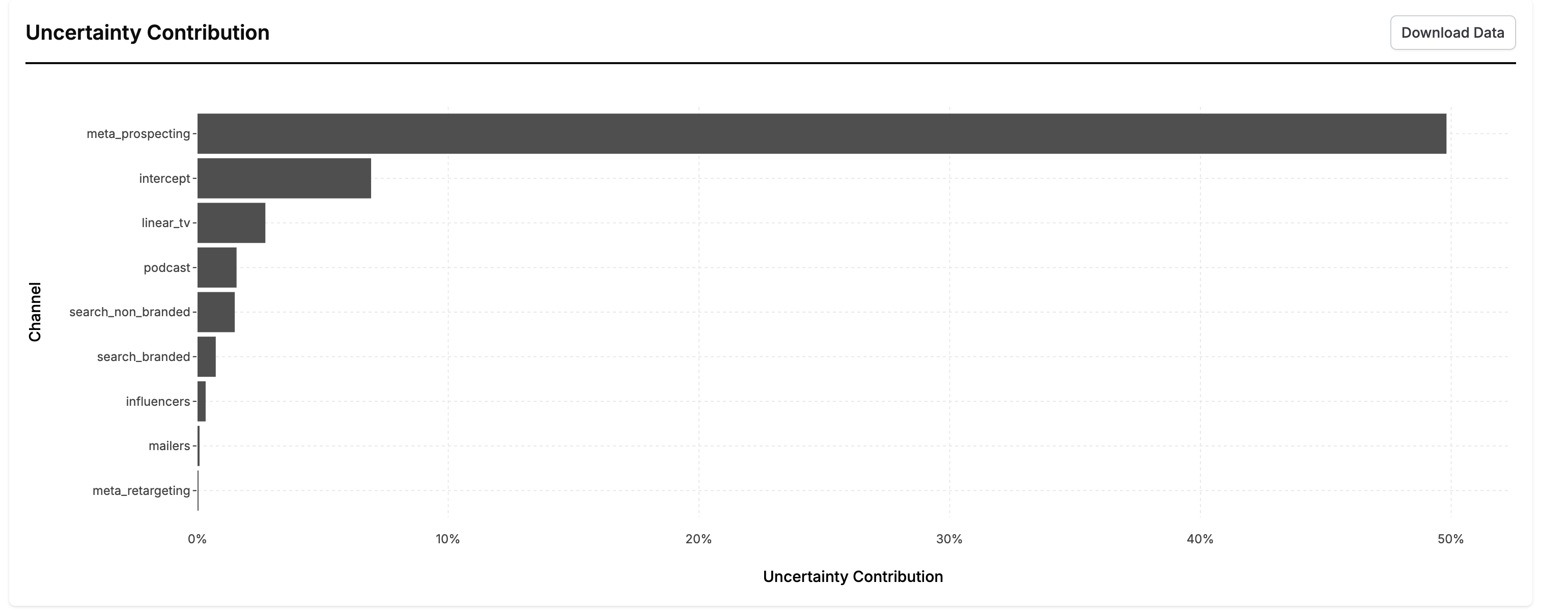 Channels with high uncertainty can be good candidates for incrementality tests because they show you where reducing uncertainty in a channel will most reduce uncertainty in your ability to forecast.